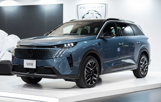 ▲第3世代の新型プジョー5008を日本初公開。ボディサイズは全長4810×全幅1895×全高1735mm/ホイールベース2900mmに設定し、7名乗りの3列式シートを配備する。インテリアには最新のパノラミックi-Cockpitを採用