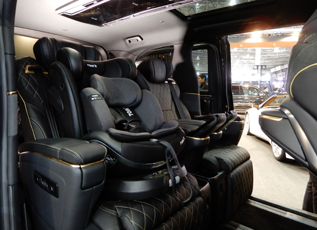 次に、LMのメインユーザーであるVIP層が移動のためだけの道具ではなく、次の一手を考える時間、静かに思考を巡らせる時間、そして家族と心を通わせる大切な時間という、移動の“時間の質”そのものを高めることを狙って開発した「レクサスLM TOM'S EDITION-GOLD LIMITED-」。成功を収める人のそばには必ず“運気を整える存在”があり、その発想からトムスが半世紀貫いてきた“妥協なき思想”と、古来より成功者に愛されてきた“黄金(ゴールド)”の精神性を巧みに融合してLMに導入する。エクステリアは専用デザインのエアロパーツを装着するとともに、過度な主張を排した上質なシャンパンゴールドのアクセントを随所に配し、光の当たり方、素材との調和、佇まいの品格のすべてによって、静かに“運気”を引き寄せる瀟洒なスタリングを創出。内包するインテリアにもゴールドのアクセントを入れ、より上質で“記憶に残る空間”を演出した。パワートレインに関しては、2393cc直列4気筒DOHC・D-4STガソリンターボエンジン+前後モーター+ニッケル水素電池で構成する「eAxle」パラレルハイブリッドシステムのチューンアップを予定している。