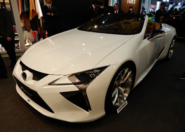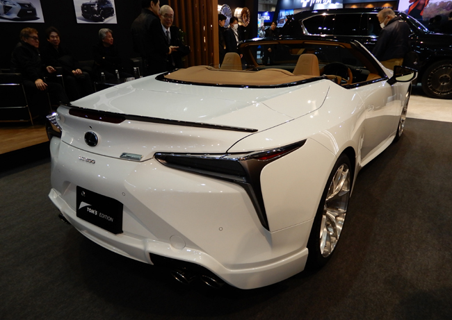 3台目は“Dynamic Elegance”をキーワードに、LCが本来持つエレガンスを起点として、トムスならではの造形美と高性能の両立を果たした「レクサスLC TOM'S EDITION」。目指したのはただ速いだけでも、ただ美しいだけでもないラグジュアリーオプンスポーツの具現化で、高級感と上質さのバランスを追求し、視覚・触感・走りのすべてにおいて成熟した大人のためのスポーツカー像を描き出す。エクステリアはスピンドルグリルの面影を残しながら、近年のレクサスが掲げる思想である“スピンドルボディ”の考え方をトムス流に融合。インテリアは純正のオーカーを基調としながら、ステアリングホイールやインパネまわり、シートなど随所にブラックを主体としたアクセントを配して、スポーティかつ上質なキャビン空間に仕立てた。4968cc・V型8気筒DOHC・D-4Sガソリンエンジンやシャシーをスポーツ方向にリセッティングしたことも訴求点。スペックの詳細については、今後アナウンスするという。