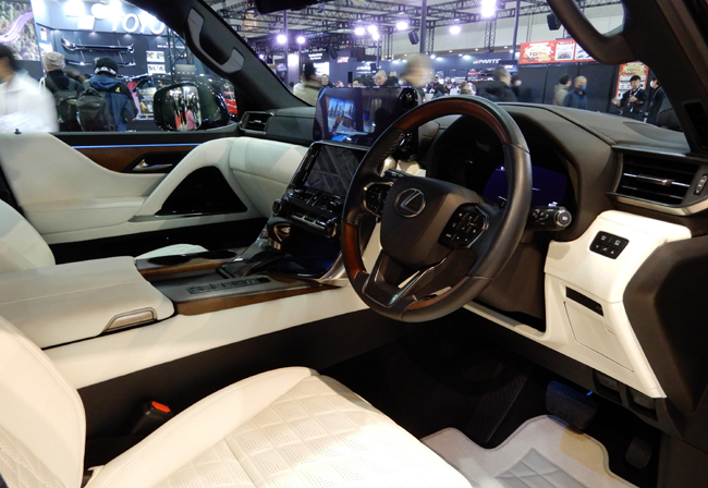 まず、レクサスLXが本来備える圧倒的な存在感にトムスの美学を重ね合わせた「レクサスLX TOM'S EDITION」は、欧州のカスタムメーカーの生み出す重厚かつ迫力のエッセンスを付加したことが特徴。研ぎ澄まされた造形が放つ“静かなオーラ”を纏うことによって、他にはない独自のプレミアムSUVに仕立てる。一方でインテリアについては、ホワイトの内装色を配してインパクトの強いキャビン空間を創出したうえで、アンビエントライトの光で完成するもうひとつの表情を形成して、“記憶に残る空間”をデザインした。パワートレインに関しては、3444cc・V型6気筒DOHCマルチホール直噴インジェクタ付D-4STガソリンツインターボエンジンのチューンアップを目指して現在開発を進めているという。