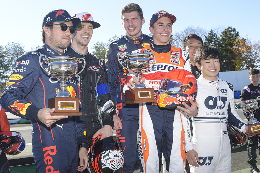 もてぎで開催されたホンダサンクスデイには、F1世界チャンピオンのM・フェルスタッペン選手を筆頭に、ホンダ(正確にはHRC)のエンジンを搭載する全2チーム4名の選手がフル参加。また、インディ・シリーズに参戦し、伝統あるインディ500優勝経験を2回も持つ佐藤琢磨選手らも参加。国内のトップカテゴリーで戦うチーム、選手も勢揃いだった。