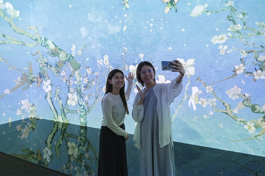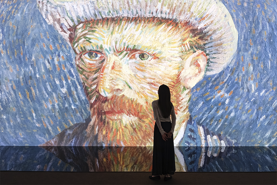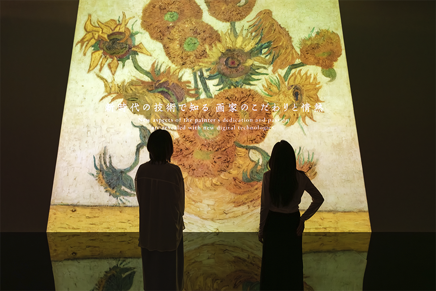 展覧会では幅14mを超える大規模空間で映像を上映するイマーシブ・コーナーを設置。ここには『花咲くアーモンドの木の枝』(テオとヨーの間に男児が生まれたことを祝って送った作品)やSOMPO美術館所蔵の『ひまわり』などの作品映像が投影されます。最新の映像技術を駆使した映像は早くも話題になっています。