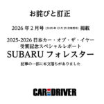 2025年12月25日発売の雑誌「カー・アンド・ドライバー2026年2月号」において、誤りがありました。大変申し訳ございませんでした。