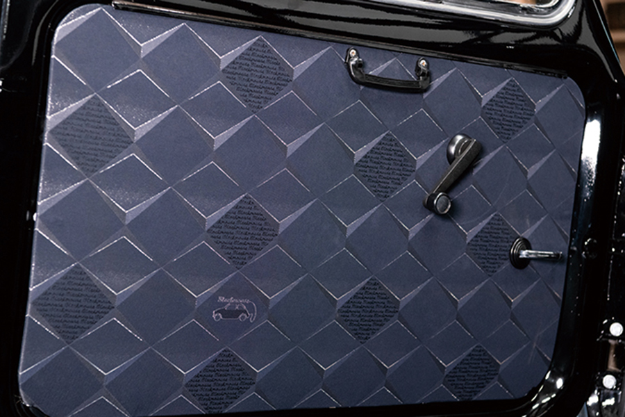 「西川さんのこだわりで、インテリアにはかなりお金をかけました」とチンクエチェント博物館がコメントしているとおり、ドアパネルには西陣織、シートは黒桟革(戦国時代には甲冑に使われるほど高い強度と美しい輝きを持つ)を使うなど高い格式とオリジナリティにあふれている。
