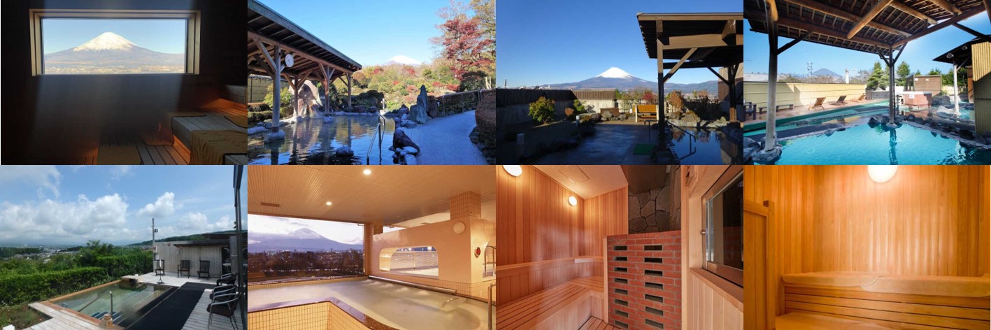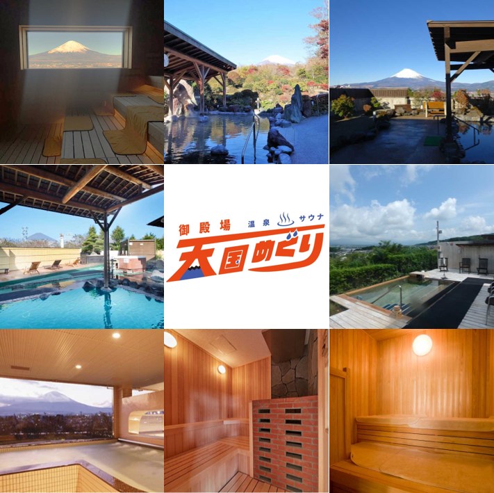 温泉・サウナ施設:木の花の湯、御胎内温泉健康センター、富士八景の湯、天然温泉 気 楽坊(御殿場高原時之栖)、源泉 茶目湯殿(御殿場高原時之栖)