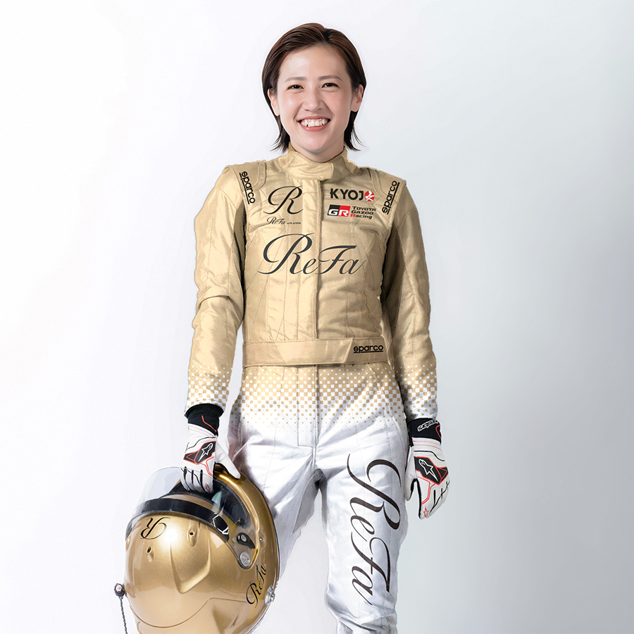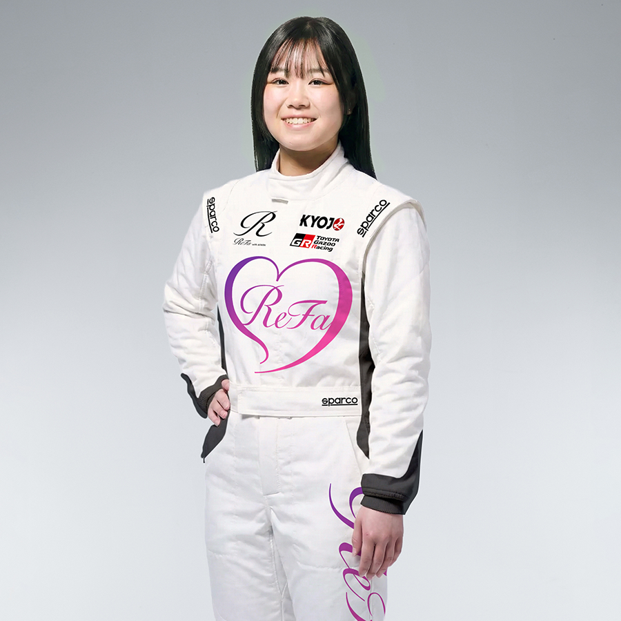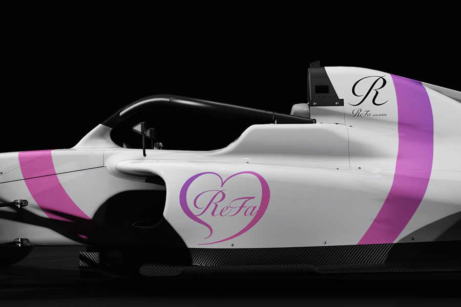KYOJO FOMULA2年の白石選手は「ReFaのハートブラシやドライバーは普段から使っています。身近なブランドで走れると知ってびっくりしました」と語る。