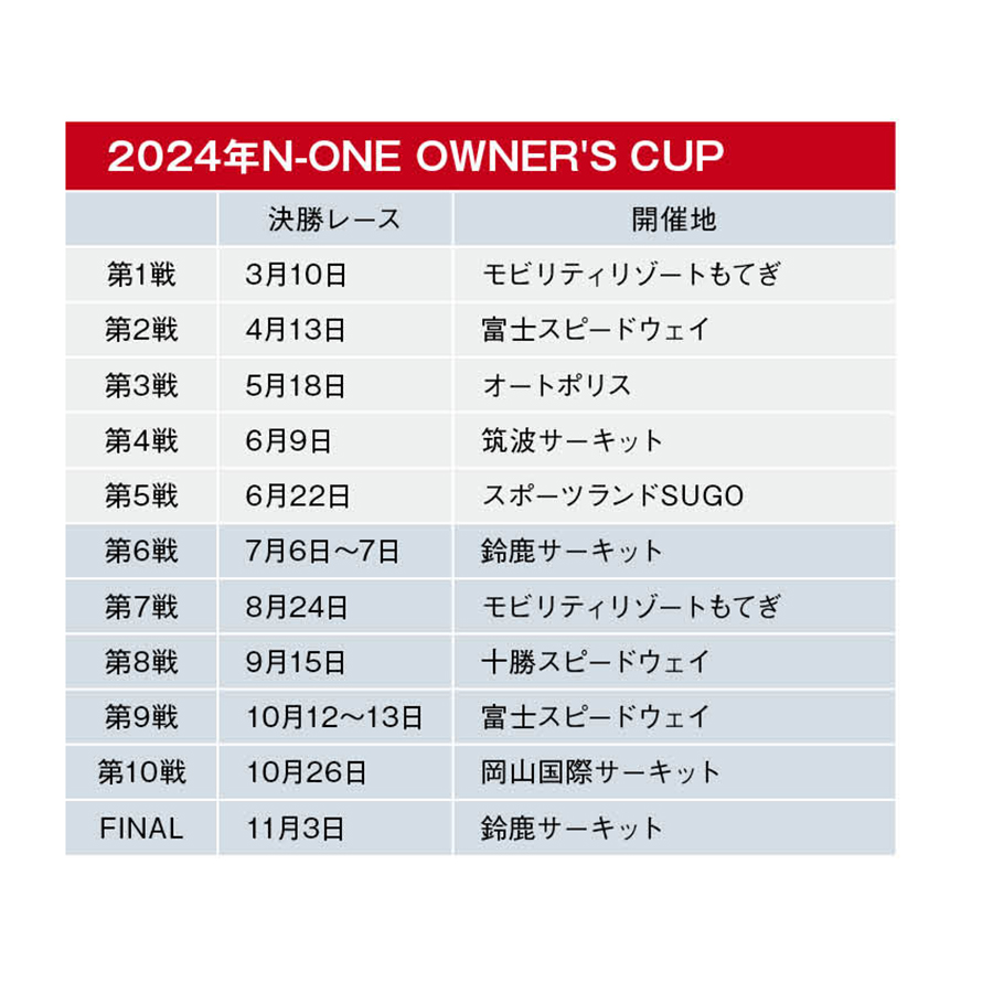 N-ONE OWNER'Sカップ、GR86&BRZカップ、ロードスター・パーティレースの年間カレンダーを紹介する。