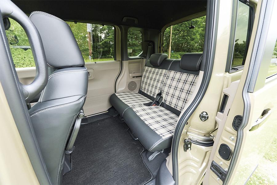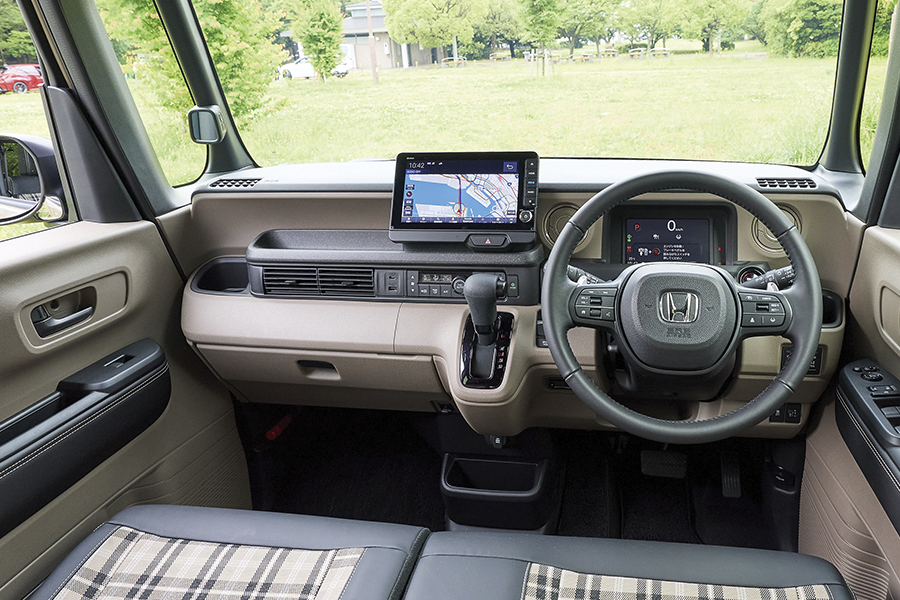 そして楽しさのいちばんのポイントは、ズバリ室内。もともとN-BOXは広い室内空間が最大の魅力となるクルマですから、その大きなスペースをいかに楽しく仕上げるかに注力したというのは、個性を際立たせる意味でも大正解ですよね。アームレストなんていう細かいところまでチェック柄で、さすがユーザーの心をわかっているという感じがしました。