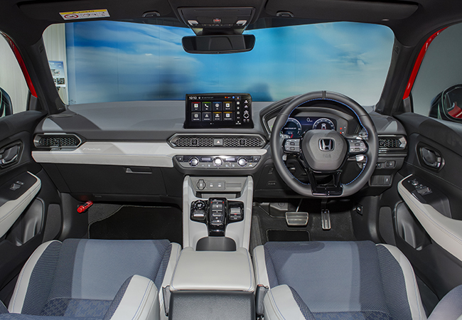 室内は「GLIDING COCKPIT」がキーワード。ホワイトと深いブルーのカラーコーディネートが印象的だ(ブラック内装も設定)。インパネは最新Honda車共通の機能的なレイアウト。上質なレザー調パッドやバイカラーのステッチがクーペらしい特別感を表現する。