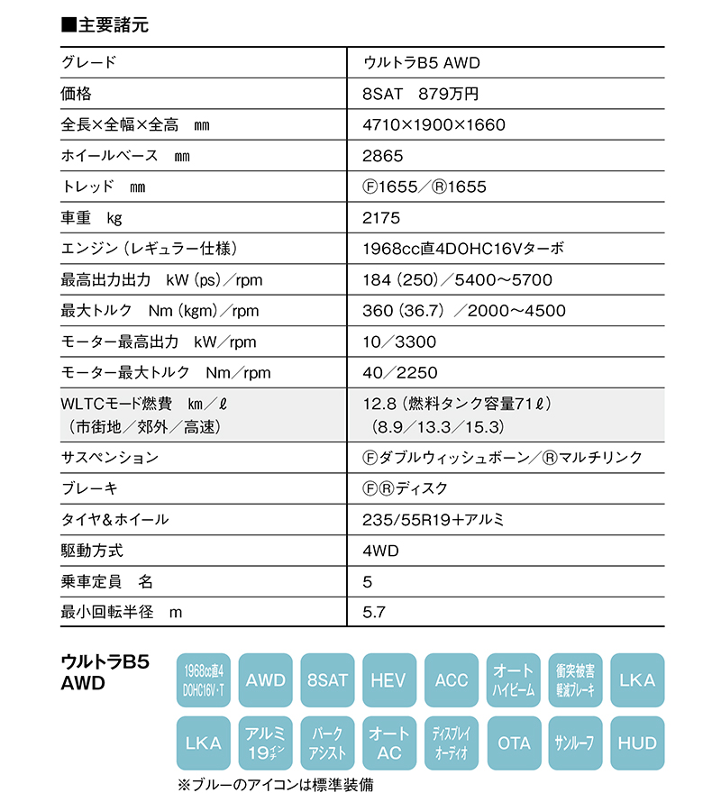 先進安全装備も充実。基本的には2022年から変わっていないが、エマージェンシー・ストップ・アシスト機能が追加された。これはパイロットアシスト作動中にドライバーがステアリングを握るよう求められても反応しない場合に自動で安全に停車させる機能だ。