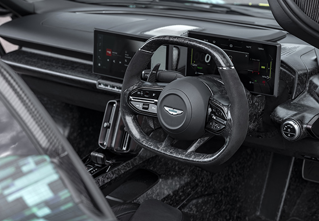 もちろんメルセデスAMG製のユニットである。けれどもこれまでのアストンマーティンに搭載されてきたV8=M177型とは「まったく異なる」。その名もM178LS2型。そうAMGファンならご承知のとおり、GTブラックシリーズ用に開発されたフラットプレーンドライサンプのスペシャルエンジンだ。アストンマーティンの開発陣によってビスポークされたM178LS2型は何と単体で828psを発揮。これに新設計の8DCTを組み合わせて0→100km/h加速は2.5秒でこなす。