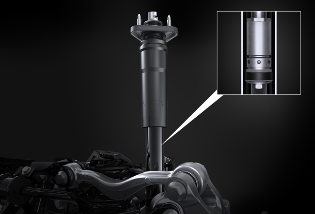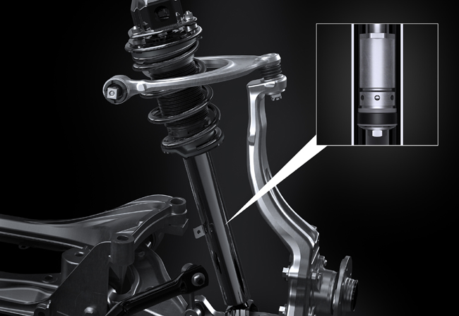 まず走りの面では、操舵機構と足回りの改良を敢行する。操舵機構では、電動パワーステアリング(EPS)に低慣性モーターを採用するとともに、従来のラック同軸式からラック平行ギヤ(バリアブルギヤ)に変更。これにより、よりリニアでスムーズなステアリングフィールを実現する。一方で足回りでは、AVS(Adaptive Variable Suspension system)の機構を従来のステップ式アクチュエーターから新規開発の内蔵式リニアソレノイドアクチュエーターに刷新。減衰力応答性が約4倍向上し、応答性のよい可変減衰力によりフラットなばね上の挙動と路面入力によるショックの低減を高次元で両立させた。