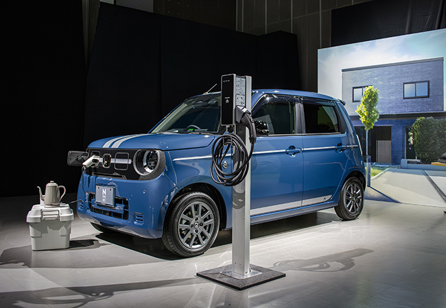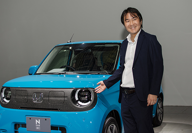 N-ONE e:のグランドコンセプトは「e:Daily Partner」。パワーユニット研究開発責任者の渡邉伸一郎氏は「開発チームと基本メカニズムはN-VAN e:と共通です。つまり信頼性と走りのよさは折り紙付き。その上でホンダらしいBEVの味づくりに注力しました。パフォーマンスは伸びのよさを重視し、航続距離はWLTCモードで270㎞以上を確保しています。ボディにも全面的に手を入れています。N-ONEとのスタイリングの違いはフロントマスクが印象的ですが、共通パーツは実はドアとルーフパネル程度。N-ONE e:は、すべてにBEV最適設計を貫いています」と説明してくれた。