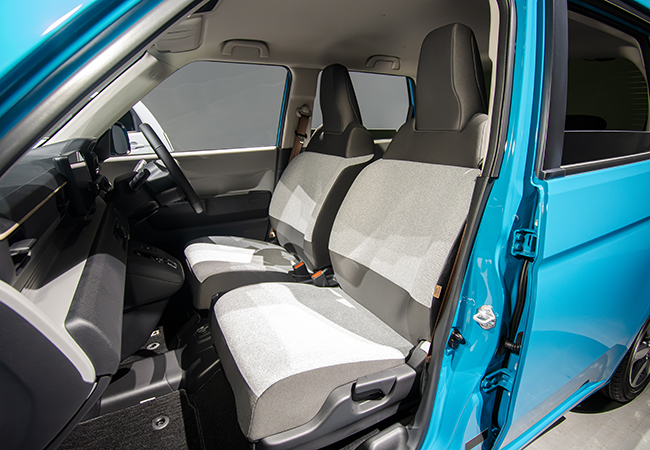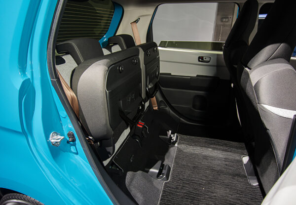 一方で、使い勝手と快適性面に対する配慮は万全。インパネは小物が自在に置けるトレイ形状。「私だけの椅子」をイメージした快適性重視シートを採用した。前席はヘッドレストと肩口の造形を一体化して座り心地を計算し尽くすとともに、座面は左右の盛り上がりを抑制し乗降性のよさを重視。後席は分割可倒に加えて、座面のチップアップが可能。観葉植物などの背の高い荷物も自在に積めるユーティリティを確保している。