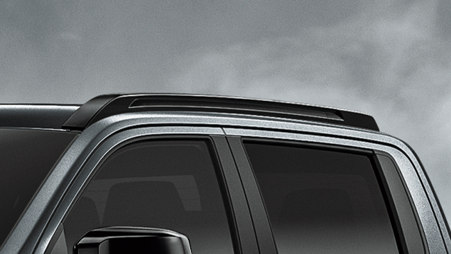 まずエクステリアにはルーフレールを追加し、18インチアルミホイールやサイドステップ、その他のメッキ/シルバーパーツと併せてブラックに統一。さらに、フロントバンパーガーニッシュ、フォグランプベゼル、電動格納式ヒーテッドドアミラー、アウタードアハンドル、リアゲートハンドル、リアバンパーをブラックメタリックで統一した。