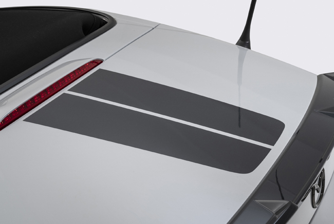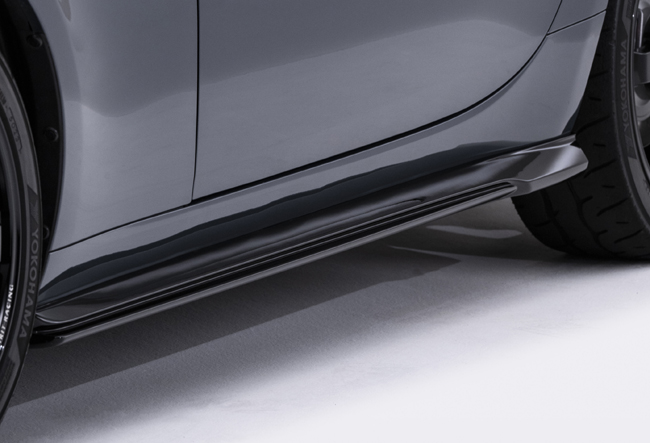 内装に関しては、黒基調のインテリアカラーおよびアルカンターラを採用することで、光の反射による視認性の悪化を防ぎ、ドライビングに集中できるコクピットを創出。また、インパネやドアトリムに加え、ハンドル/シフトノブ/パーキングシフトレバーなどにもアルカンターラ素材を配し、操作時のグリップ力を高める機能性を持たせながら、レース車両のようなスパルタンなムードと上質さを表現する。さらに、シートベルトやステアリングトップマーク、ステッチ、シートパイピングに刺激的な赤いアクセントを施して、スポーティなムードを増幅させた。
