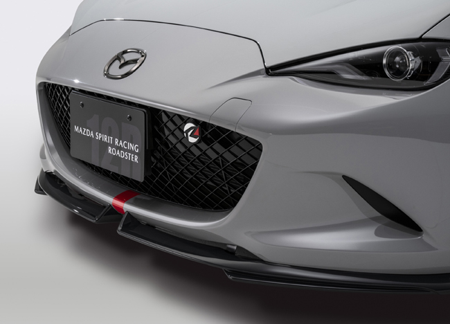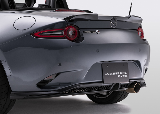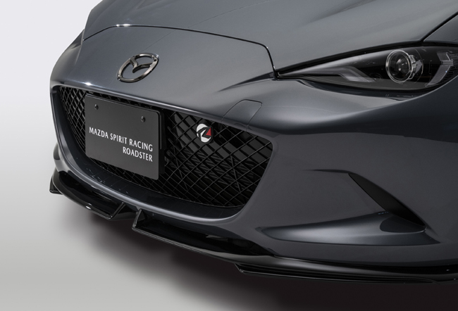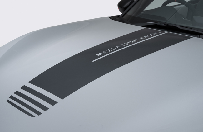エクステリアについては、既存のロングノーズ・ショートデッキや低く構えた美しいプロポーションをベースに、レースフィールドで鍛え上げた機能を融合して、速さと強さを直感的に感じさせるスパルタンな造形へと昇華させたことが訴求点である。具体的には、S耐シリーズ車両の12号車をモチーフとしたブリリアントブラックのフロントアンダースカートやサイドアンダースカート、リアスポイラー、リアアンダースカートといったエアロパーツを装備して、空力性能を高めた。また、フロントグリルはメッシュタイプでデザインし、内部にMAZDA SPIRIT RACINGのエンブレムを配備している。