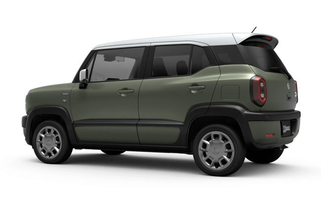 ▲スズキ・クロスビーHYBRID MX(2WD) 価格:215万7100円 全長3760×全幅1670×全高1705mm ホイールベース2435mm 車重970kg 乗車定員5名 WLTCモード燃費22.8km/リットル 写真のボディカラーはタフカーキパールメタリック ホワイト2トーンルーフ