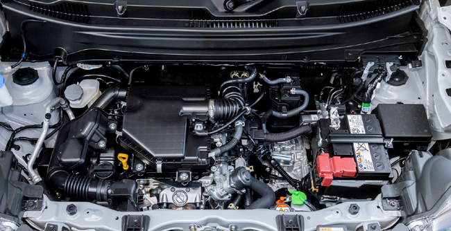 ▲パワートレインにはZ12E型1197cc直列3気筒DOHC16V・VVTエンジン(80ps/11.0kg・m)+WA06D型モーター(2.3kW/60Nm)+リチウムイオン電池(容量3Ah)+CVTでシステムを構成するマイルドハイブリッドを搭載