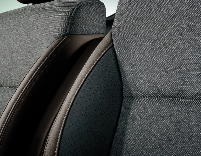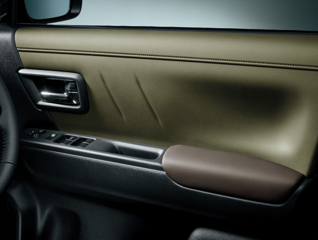 ▲HYBRID MZには写真上よりレザー調&撥水ファブリックシート表皮、サファリカーキのインパネカラーパネル&ドアトリムカラーパネル、レザー調フロントドアトリムアームレストなどで構成するアップグレードパッケージをオプションで用意