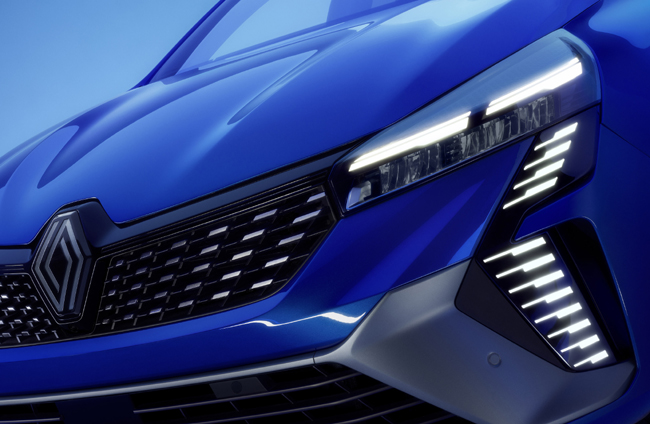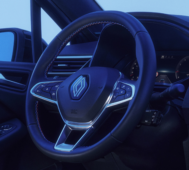 まずエクステリアでは、よりコンパクトでスリムになったフルLEDヘッドライトを採用。合わせて輪郭を拡大したチェックグリッドパターンのグリルや、ルノーのエンブレムからインスピレーションを受けた縦長のハーフダイヤモンド型LEDデイタイムランプ、モータースポーツの世界から着想を得たマットシェルグレーのF1ブレードなどを配して、より精悍かつ力強いフロントマスクを創出する。一方でリアビューは、クリアレンズ化されたLEDリアコンビネーションランプや、左右に配したフィニッシャーおよびアンダープロテクターを組み込んだ新造形のバンパーなどを装備して、いっそうスポーティで安定感のある後ろ姿を具現化した。また、新設定のエスプリ アルピーヌ フルハイブリッドE-TECHはフロントフェンダーにアルピーヌのエンブレムを装着し、さらに足もとにはスポーティでエレガントなデザインの専用17インチアロイホイール(タイヤは205/45R17サイズ)を組み込んでいる。ボディカラーはブルーアイロンM、グリラファルM、ブラングラシエ、オランジュバレンシアM(受注生産)のほか、ローンチ記念限定色としてルージュフラムMを30台限定でラインアップした。