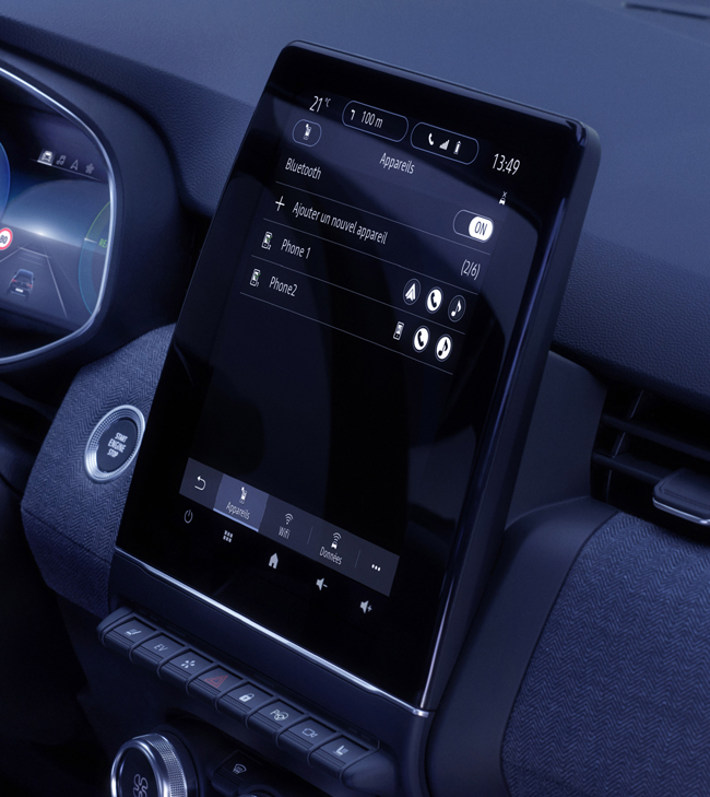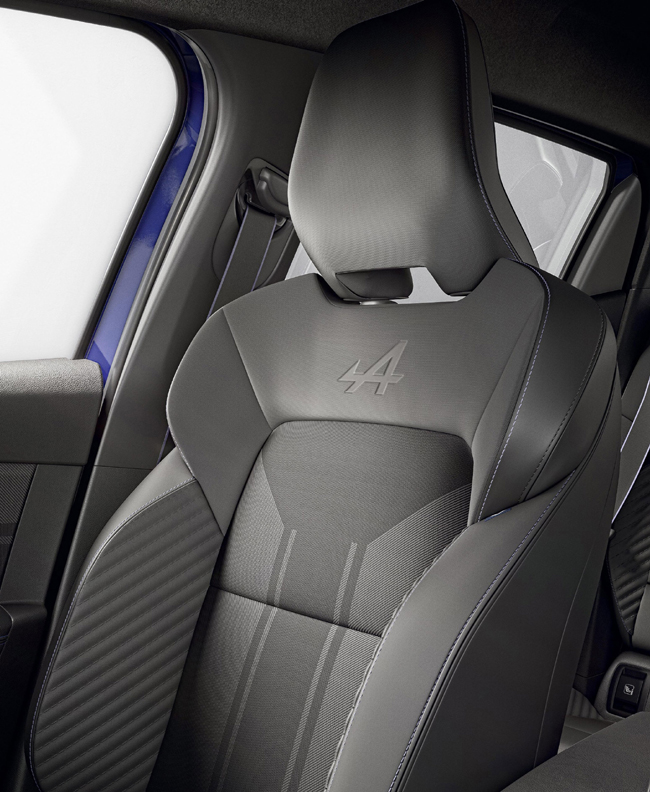 インテリアについては、センターコンソール中央のディスプレイにスマートフォン用ミラーリング機能が付いた9.3インチ マルチメディアEASY LINK縦型タッチスクリーンを新たに装備したことがトピック。オーディオ、電話、運転・駐車支援システム、車両設定等の各種操作が行えるほか、Apple CarPlay/Android Autoにも対応する。また、多様な情報を見やすく表示する10インチデジタルインストルメントパネルや、冷たい冬の朝でも手のひらに温かさを届けるステアリングヒーター、鮮明に音を描き出すBoseサウンドシステム+9スピーカーなどを設定する。さらに、新設定のエスプリ アルピーヌ フルハイブリッドE-TECHにはバイオスキン×ファブリックのコンビ素材を張ったうえでシートバックにAエンブレムを刻印したスポーツシート(シートヒーター機構付き)や、ステアリングヒーター付TEPレザーステアリングホイール、アルミペダル、アルピーヌロゴ入りキッキングプレートなどを配備して、スポーツシックで上質なコクピットを演出した。