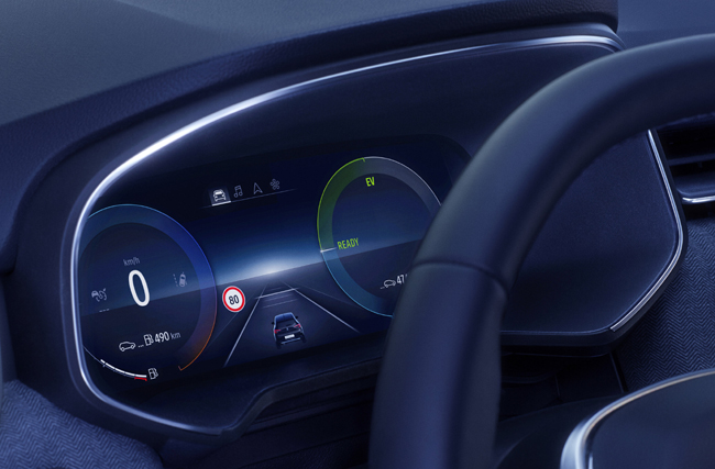 注目のパワートレインは、従来比で3ps/4Nm出力アップしたH4M型1597cc直列4気筒DOHC16Vガソリンエンジン(最高出力94ps/5600rpm、最大トルク148Nm/3200rpm)に、最高出力36kW/1677~6000rpm、最大トルク205Nm/200~1677rpmを発生するメインの駆動用Eモーター、最高出力15kW/2865~1万rpm、最大トルク50Nm/200~2865rpmを発生する始動および発電用モーターのHSG(ハイボルテージスターター&ジェネレーター)、容量1.2kWh(250V)のリチウムイオンバッテリーでシステムを構成するフルハイブリッドE-TECHを搭載。システム総出力は従来の140psから143psに向上する。トランスミッションにはF1で培った技術を活用した、電子制御ドッグクラッチ付マルチモードATを採用。また、エンジン側は4速、メインモーター側は2速の変速機構を持ち、これらを合わせて計12通りの変速比を設定した。