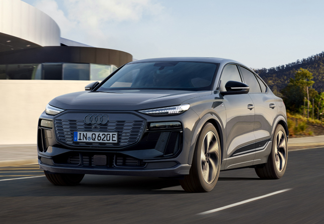 ▲アウディQ6スポーツバックe-tronクワトロ 価格:1037万円 全長4770×全幅1940×全高1660mm ホイールベース2895mm 車重2410kg 乗車定員5名 一充電走行距離(WLTCモード)663km 写真はS-lineパッケージ装着車で、ボディカラーはデイトナグレーパールエフェクト