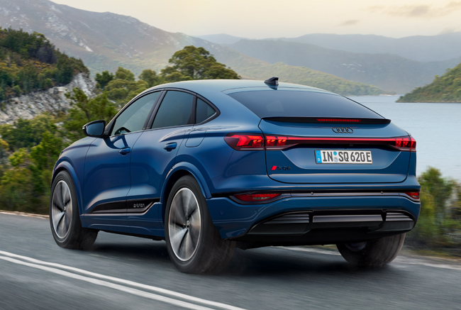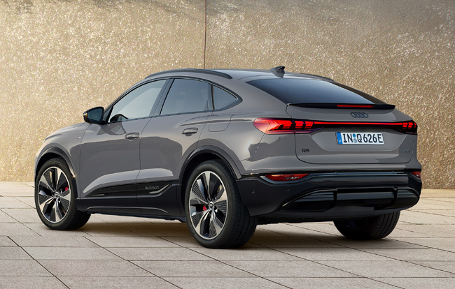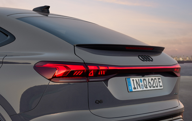 エクステリアについては、初代TTクーペのアイコニックなデザインを思わせる傾斜したルーフラインによってスポーティな美しさをさらに際立たせ、優雅に流れる水滴のような流線形フォルムを具現化。ルーフ全体のデザインを見直すことによって車高はSUVモデルのQ6 e-tronよりも最大40mm低くなり、空気抵抗係数(Cd値)はQ6 e-tron比で0.02向上の0.26を実現する。一充電走行距離も最大で20km延長した。