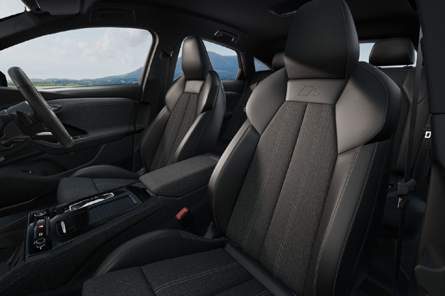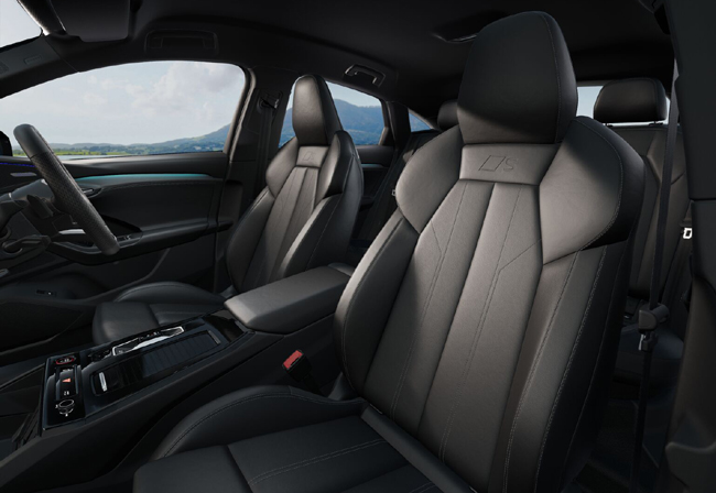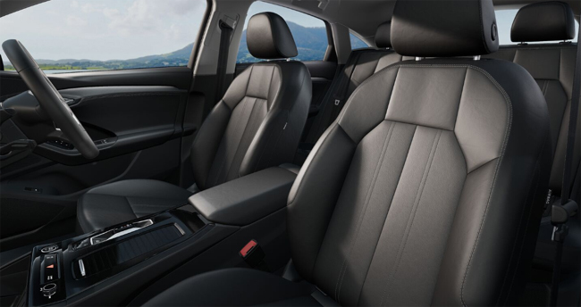 キャビン空間自体は、広々としたゆとりの空間に居心地のよいラウンジのような居住性と、ドライビングに集中するための機能性を美しく両立させたことがトピック。トリムはドアからコクピット全体を通ってセンターコンソールにまで広がり、調和の取れた、乗員を包み込むようなスペース感覚を実現する。デコラティブインレイはマットブラッシュトアルミニウム アンスラサイトを標準で装備し、オプションとしてバーチナチュラル グレーやスイートガムナチュラル ブラウン、カーボンツイルマイクロストラクチャーを設定。前席はQ6スポーツバックe-tronにレザー/アーティフィシャルレザー表皮のスタンダードシートを、SQ6スポーツバックe-tronにSロゴ入りレザー/アーティフィシャルレザー表皮のスポーツシートを配備し、後席には40:20:40分割可倒式シートを採用した。