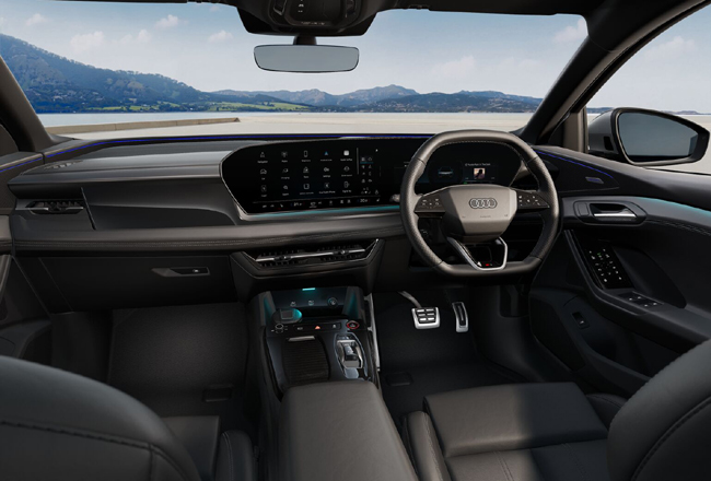 インテリアに関しては、立体的かつハイコントラストな新しい3Dデザインと新世代のデジタルステージを採用したことが訴求点だ。アウディMMIパノラマディスプレイとMMIパッセンジャーディスプレイで構成する、いわゆるデジタルステージは、インテリアのデザインコンセプトと完全に統合され、明るく広々としたスペース感覚を創出する。スリムな独立型アウディMMIパノラマディスプレイは、曲面デザインとOLEDテクノロジーを特徴とし、11.9インチのアウディバーチャルコックピットと14.5インチのMMIタッチディスプレイで構成。運転席エリアは曲線を基調にしてデザインし、ディスプレイがドライバー側に向けて緩やかにカーブする。このディスプレイは、アンビエントライトの効果により、夜になると宙に浮かんでいるように見え、合わせて操作も最適化される。一方で助手席前には、アクティブプライバシーモードを備えた10.9インチMMIパッセンジャーディスプレイを装備。これにより運転中にドライバーの注意が散漫になることを防止し、合わせて助手席の乗員が映画を観たり、ビデオコンテンツをストリーミング再生したり、ドライバーにナビゲーションのルート案内を伝えたり、充電ステーションを見つけたりすることを可能とした。
