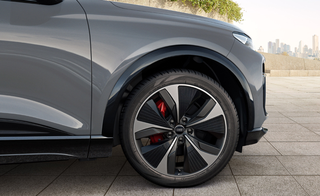 各部のデザインにも徹底してこだわる。垂直に構えたフロント部は、完全に閉じた立体的なシングルフレームの印象を際立たせ、同時にセレナイトシルバーまたはハイグロスブラックのマスクがサイドエアインテークを包み込む。また、高い位置に配備したデジタルデイタイムランニングライトがQ6スポーツバックe-tronシリーズに特徴的かつオリジナリティあふれる眼光をもたらした。一方でサイドビューは、長いホイールベースと短いオーバーハングに、流麗なルーフラインと低く引き締まった形状のグリーンハウスを組み合わせて、鋭いラインやエッジと対比する豊かな陰影を形成。後部ドアからリアのコンビネーションライトに伸びる力強いラインは、quattroブリスターの上部とホイールアーチ上の幅広いショルダーを際立たせる。上向きにカーブしたリアクォーターウィンドウの造形も印象的だ。足もとにはQ6スポーツバックe-tronおよびQ6スポーツバックe-tronクワトロが前8J/後9J×18 10スポークアルミホイール(タイヤは前235/65/後255/60R18サイズ)を、SQ6スポーツバックe-tronが前8.5J/後10J×20 5アームストラクチャー グラファイトグレーポリッシュトアルミホイール(タイヤは前255/50/後285/45R20サイズ)を標準で装着する。そしてリアセクションは、SUVモデルよりもダイナミックに絞り込み、スポーティなエレガンスと力強さを融合。フラットなリアウィンドウのエッジには、独立した3つ目のブレーキランプを組み込む。e-tron GTシリーズとも共通する、途切れなく続くライトストリップと広々としたクリアなアーキテクチャーのアレンジも、Q6スポーツバックe-tronシリーズに先進的かつシックな印象を与えている。ボディサイズはQ6スポーツバックe-tronが全長4770×全幅1940×全高1660(エアサスペンション装着車1635)mm/ホイールベース2895mmに、SQ6スポーツバックe-tronが全長4770×全幅1965×全高1630mm/ホイールベース2895mmに設定した。