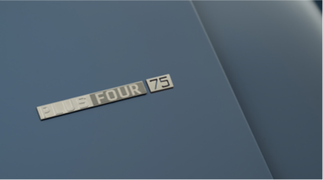 今回の限定モデルは、この代名詞が誕生75周年を迎えることを記念したアニバーサリーモデルに位置。新世代のCXジェネレーション接着アルミプラットフォームに、BMW製の1998cc直列4気筒DOHCツインパワーターボエンジンを専用チューニングしたパワーユニット(最高出力/最大トルクはMTが258ps(190kW)/5500rpm、350Nm/1000~5000rpm、ATが258ps(190kW)/4400rpm、400Nm/1000~4300rpm)、6速MTまたはパドルシフト付8速ATのトランスミッションを採用する現行のPLUS FOURをベースに、通常ではオプション設定のエクステリアペイントやインテリアレザー、カーペット、イージーアップフード、ウイングビーディングなどのカラー選択を無償で提供する。さらに、専用の“PLUS FOUR 75”バッジを特別装備した。