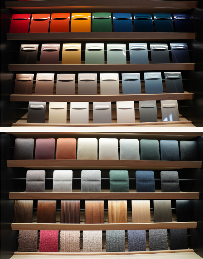 エクステリアペイントは標準のSPORT SOLID COLOURSのほか、CLASSIC SOLID COLOURS、METALLIC COLOURS、SPECIAL SOLID COLOUR、SPECIAL METALLIC COLOURSが選択可能。イージーアップフードは、標準のブラックモヘアのほかにカラー選択ができる。また、インテリアレザーは標準のペブルブラック/グレーテキスタイルのほか、2トーン内装パック2~6、ペブルグレーンレザー、ソフトグレーンレザーを設定。カーペットは標準のスタンダードウィーヴブラックのほか、ボックスウィーヴが選べる。さらに、ウイングビーディング(パイピング)は標準のブラックのほかにカラー選択を可能とした。