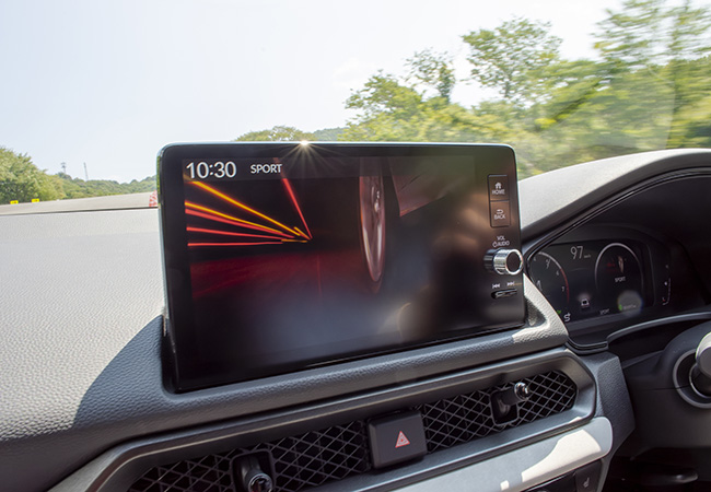 加速フィールは爽快そのもの。車速が100km/hあたりになると加速の伸びが頭打ちになるe:HEVらしい面はあるが、そこにいたるまでの気持ちよさは最高。これを超えるクルマはなかなかないと思えた。まさにアクセルペダルとパワートレーンが一体化したかのようなレスポンスが楽しめた。軽やかなサウンドとともにエンジンが伸びやかに吹け上がっていくのが気持ちいい。
