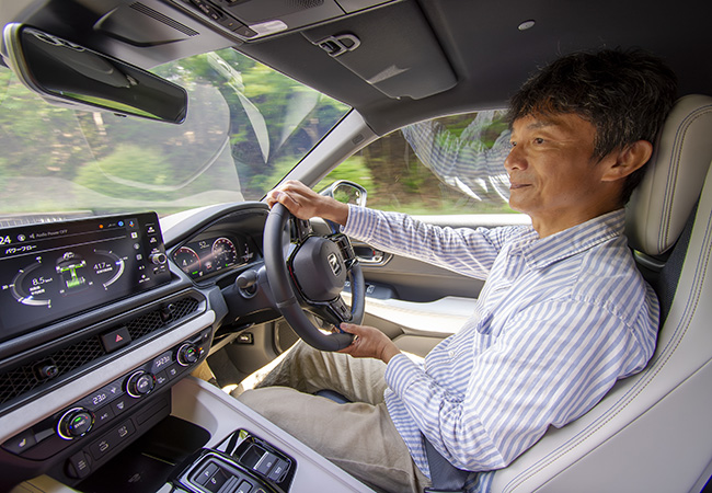 実のところ、実力の約8割程度を引き出す今回の試乗条件下では駆動力を生んでいるのはモーターのみ。エンジンは発電に徹しているという。室内に届くエンジンサウンドはアクティブノイズコントローラーによるものが主役と説明された。だがそれらの連携と味付けは実に巧み。プレリュードならではのスポーティな世界を見事に実現している。