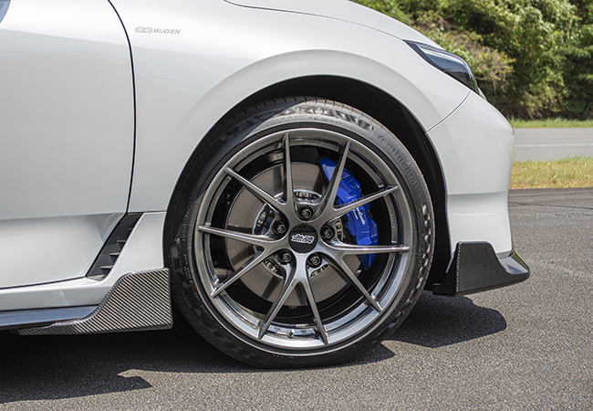 シャシーはシビックタイプR用の一連のアイテムを用いつつ特性を変更。応答性のいいハンドリングとスムーズな乗り心地を両立させている。快適性にも配慮してチューニングした点がポイントだ。車体については、リニアで一体感のあるハンドリングと、しなやかな乗り心地を両立するため、剛と柔を併せ持った構造としたほか、トルクステア抑制のため、左右の駆動力が均等となるよう右側ドライブシャフトとデフの間にハーフシャフトを追加している。