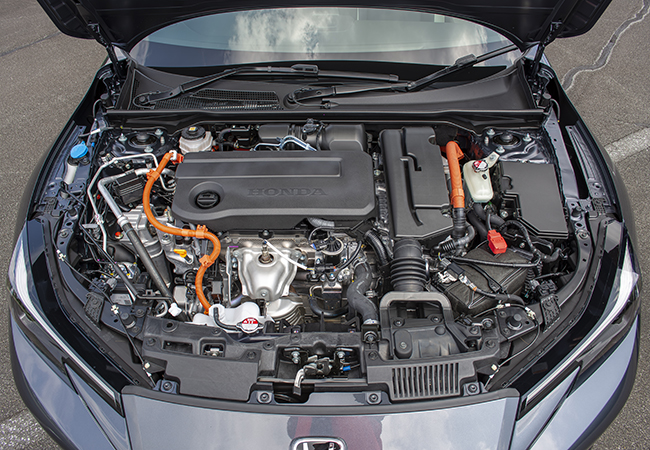 メカニズムは最先端。2リッター直4アトキンソンサイクルエンジンに2モーターを組み合わせたe:HEVシステムは、プレリュードにふさわしく、一段とエモーショナルに進化している。ホンダ車として初となる制御技術「Honda S+シフト」を採用。S+シフトは、e:HEVでもマニュアルシフトを楽しめるようにと新たに開発された新機構である。モーター駆動でありながら仮想の8段変速で加減速時に緻密にエンジン回転数を調節。あたかも変速機があるかのようなダイレクトな駆動レスポンスと鋭い変速感を実現する。エンジン回転と同期したサウンドをスピーカーから流すアクティブサウンドコントロールや専用メーターを導入。ドライバーの五感を刺激する走りを目指した。