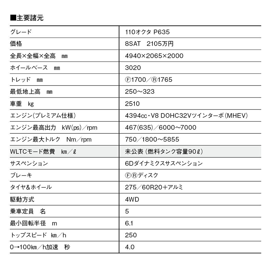 パワーユニットの出所はBMWで、最高出力は635㎰、最大トルクは750Nmの驚異的なパフォーマンスを発揮する。数値だけ見ていればスーパーカーの領域にある。