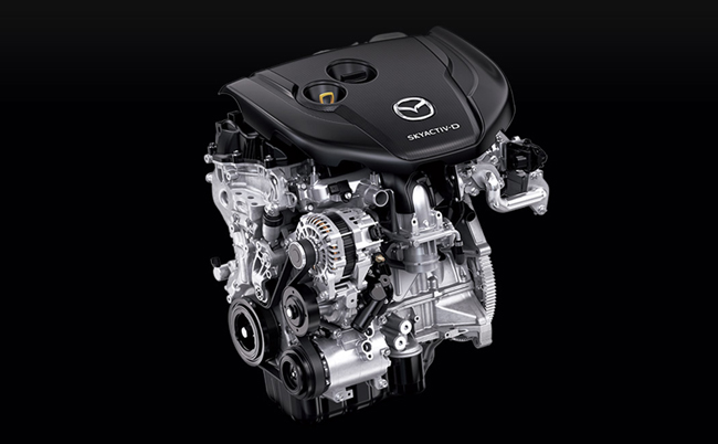 ▲ディーゼルエンジンには既存のXDモデルと同様の“SKYACTIV-D 1.8”S8-DPTS型1756cc直列4気筒DOHC16Vコモンレール式直噴ディーゼルターボエンジン(130ps/27.5kg・m)を搭載