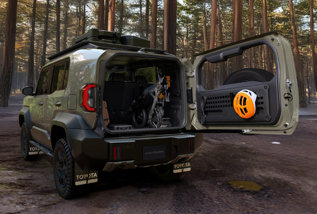 今回の発表では、FJのカスタマイズ仕様と、新しい電動パーソナルモビリティの「LAND HOPPER」も披露する。カスタマイズ仕様は、フロントマスクに往年のランクルを彷彿とさせる丸目のLEDヘッドランプを採用。また、悪路での走破性を向上させる専用バンパーやスキッドプレート、シュノーケル、サイドアンダーガード、積載性を高めるルーフキャリア、アウトドア用品などが取り付けられるモールパネルなど、“どこにでも行きたくなる”ランクルらしい外装・機能アイテムを装備した。トヨタは今後、FJのカスタマイズの楽しさを広げるオプションを順次開発し、地域のニーズに即して導入していくという。