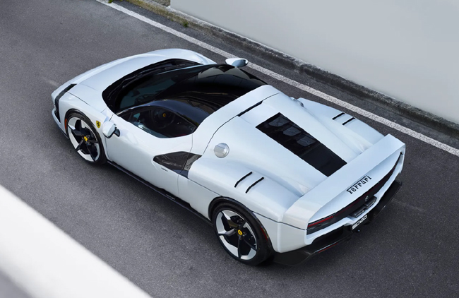 べースモデルとして選ばれたのは、パワートレインにミッドシップ配置の“ピッコロV12(ミニV12)”こと2992cc・V型6気筒DOHCツインターボエンジン(663hp/740Nm)、ダブル・ローターでシングル・ステーター型のMGU-Kモーター(122kW/315Nm)、専用セッティングの8速DCT、モーターとエンジンを切り離すトランジション・マネージャー・アクチュエーター(TMA)、総電力量7.45kWhのリチウムイオンバッテリーで構成するプラグインハイブリッドシステムを搭載し、システム総出力830hpを発生して後輪を駆動するベルリネッタ(クーペ)モデルの「296GTB」。デザインはフラヴィオ・マンゾーニ氏率いるフェラーリ・スタイリングセンターが担当した。