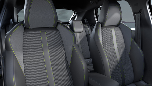 注目のパワートレインは、“PureTech”1199cc直列3気筒DOHCガソリンターボエンジン(最高出力100ps/5500rpm、最大トルク205Nm/1750rpm)に、電気モーター(最高出力15kW/4264rpm、最大トルク51Nm/750~2499rpm)とリチウムイオンバッテリー(総電力量0.9kWh)、6速デュアルクラッチATで構成する48Vマイルドハイブリッドシステムを搭載して前輪を駆動。電動モーターのアシストにより発進停止時の振動が抑制され、低速からの力強いトルクの立ち上がりとともにスムーズで心地よい加速を実現する。また、低速時の100%電動走行も果たし、走行状況によって、約30km/hまで電気による走行が可能。信号待ちの多い市街地走行では、1時間あたり約50%はエンジンを使用しない状態となり、実用燃費を飛躍的に向上させる。WLTCモード燃費では22.4km/リットルを達成した。