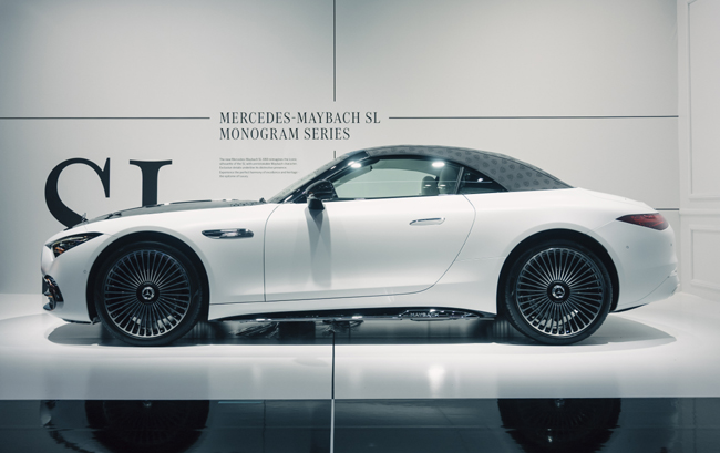 2024年8月に米国カリフォルニア州モントレーにおいてワールドプレミアを飾ったメルセデス・マイバッハSL 680 モノグラムシリーズは、マイバッハブランド史上、最もスポーティなモデルに位置づけられ、細部までこだわった絶妙なデザインに、上質な素材の組み合わせを採用。また、内外装の随所にマイバッハパターンを配して、究極のロードスターモデルであることを主張する。市場投入に際しては、外装色にMANUFAKTURガーネットレッド(メタリック)を纏った「レッドアンビエンス」と、MANUFAKTURオパリスホワイトマグノを纏った「ホワイトアンビエンス」という2つのキュレーションを設定した。
