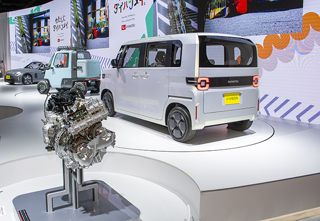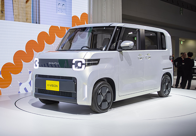 ダイハツ・ブースでK-OPENとともに熱い視線を集めたのがK-VISION。次期タントを予感させる助手席側大開口を誇るKスーパートールワゴンだ。パワーユニットはダイハツ独自開発のe-SMARTハイブリッド。すでにロッキー/ライズで実績があるエンジンを主に発電に使う高効率システムである。ローキー/ライズのe-SMARTハイブリッドは、モーターを外部調達している関係で高コストだったが、K-VISION用はモーターを自社開発し低コストを実現。燃費は現行車比20%向上したという。今回のJMS2025には、スズキがBEVのVision e-Sky、BYDもKカー規格のBEV、ラッコを出展。Kカーの電動化の未来を提示した。その中でK-VISIONは、現実的な最適解という印象。市販が楽しみだ。