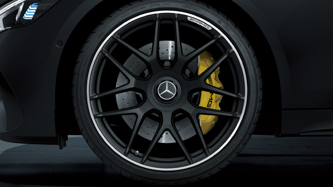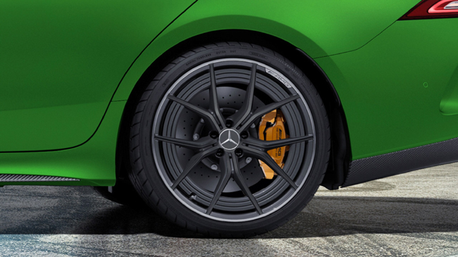 まずメルセデスAMG GT 53 4MATIC+ ファイナルエディションは、ボディカラーにダークカラーのMANUFAKTURグラファイトグレーマグノ(マット)を纏ったうえで、通常モデルでは上位モデルでしか選択できない有償オプションのAMGカーボンエクステリアパッケージやAMGナイトパッケージⅡ、鍛造21インチAMGアルミホイール(RWE)を標準装備。ブレーキキャリパーには通常モデルでは有償オプションのAMGイエローブレーキキャリパーを装着する。
