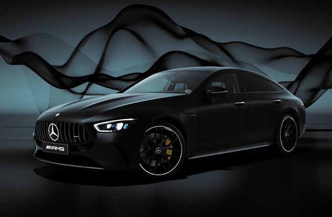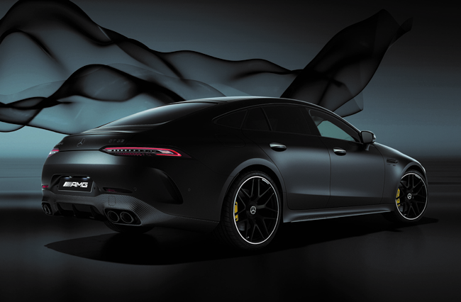 現行メルセデスAMG GT 4ドアクーペの有終の美を飾る今回の特別仕様車は、美しさと躍動感が高度に調和するエクステリアやインテリアに、ブラックとカーボンファイバー材のアクセントを随所に配して、力強く研ぎ澄まされた印象をより際立たせたことが特徴である。