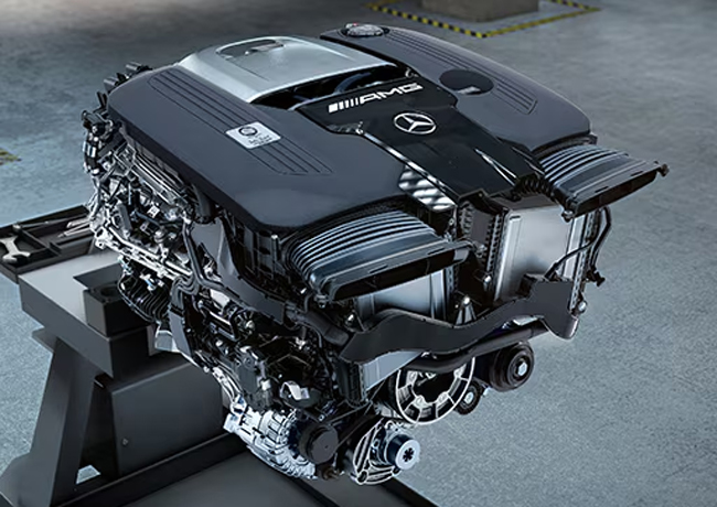 ▲パワートレインは177型3982cc・V型8気筒DOHCツインターボエンジン(639ps/900Nm)に、リアアクスルに配する電気モーター(150kW/320Nm)、専用セッティングのAMGスピードシフトTCT(電子制御9速AT)、400VのAMGハイパフォーマンスバッテリー、AMGのパフォーマンス志向連続トルク可変配分4輪駆動システムのAMG 4MATIC+でプラグインハイブリッドシステムを構成