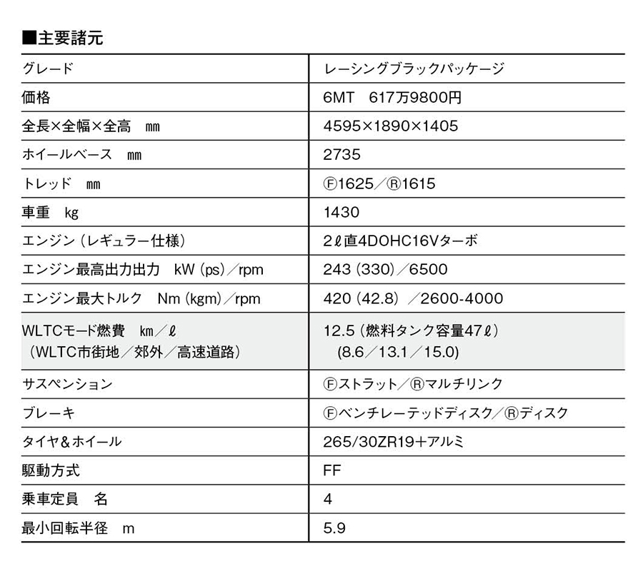 ホンダ・シビック・タイプRレーシングブラックパッケージ/価格:6MT 617万9800円。タイプRは現在レーシングブラックパッケージのみ受注を再開。エンジンは珠玉の2リッターターボ(330ps/420Nm)。圧倒的に速くサーキットランも自在にこなす本格派