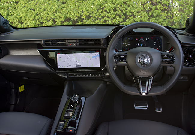 システム出力145psのMHEVパワートレーンはスポーティな印象。ドライブすると兄弟車と明確な差を感じる。全体的にアクセルレスポンスがよく、速さでも上回るように感じられた。アルファらしさを演出するため、グループ内の兄弟車とはいろいろな点が専用に仕上げられているようだ。